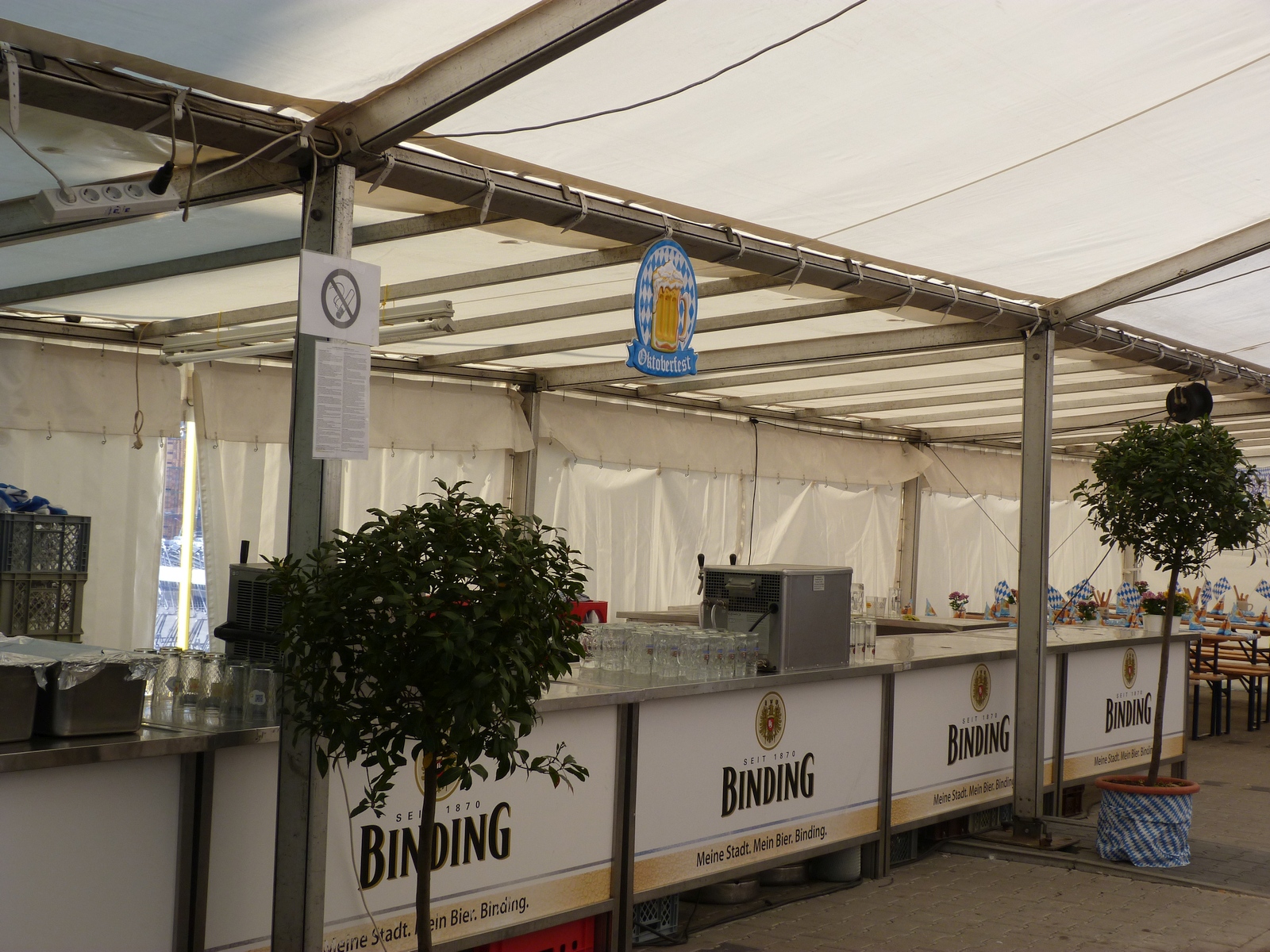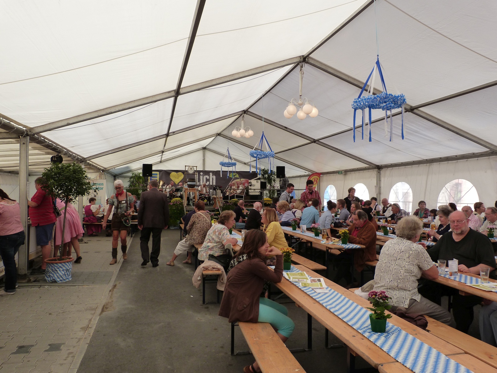 Am Vormittag waren die Vorbereitungen abgeschlossen, die Plätze im Zelt bereits kurz nach 14 Uhr erstaunlich gut erfüllt. Organisatoren und Unterstützer stellen sich für Fotos auf, Infostände werden besetzt. Die ersten Politiker erscheinen, ganz früh der Schirmherr des 1. Unterliederbacher Oktoberfestes, Frankfurts Stadtkämmerer Uwe Becker.