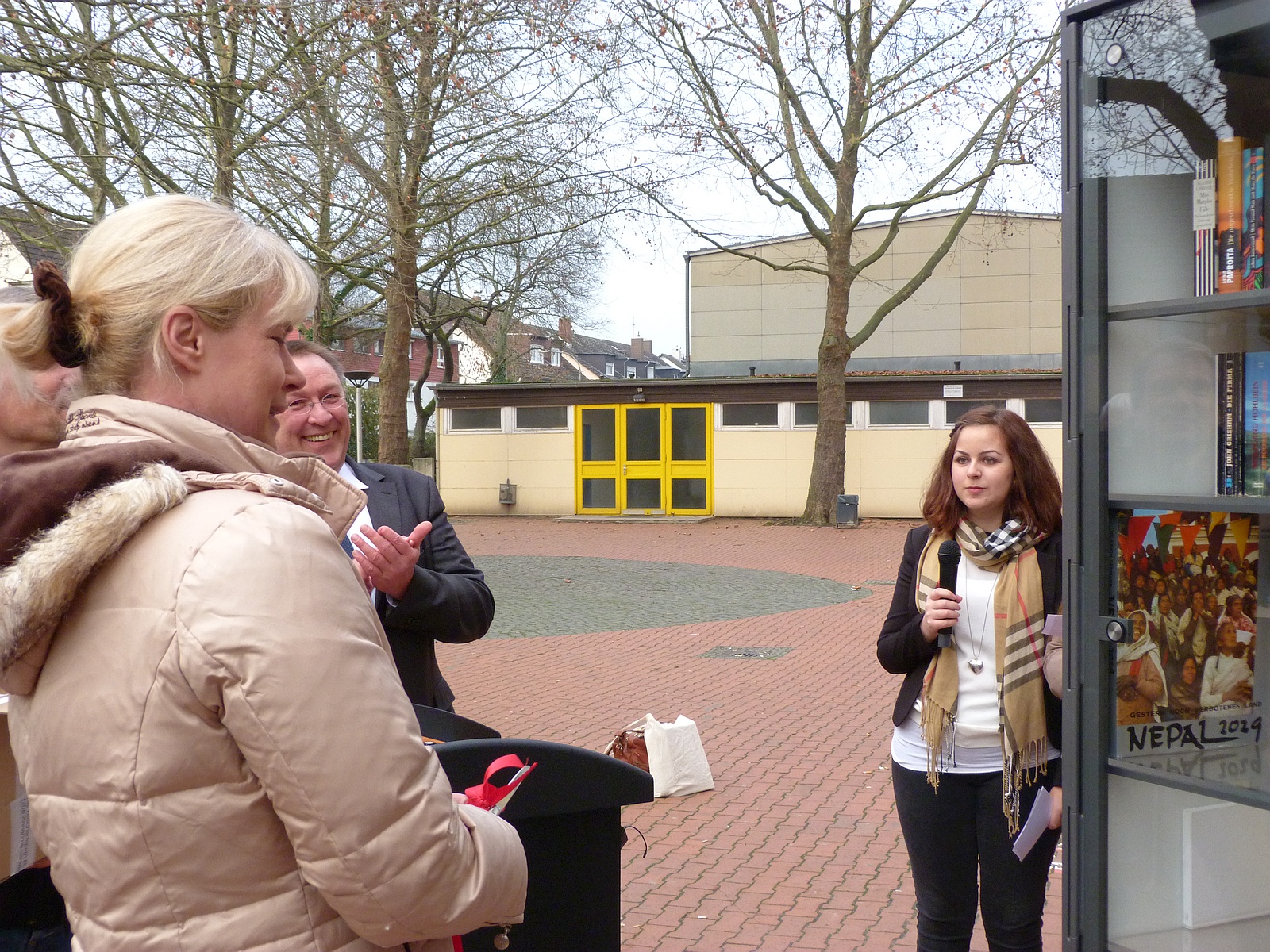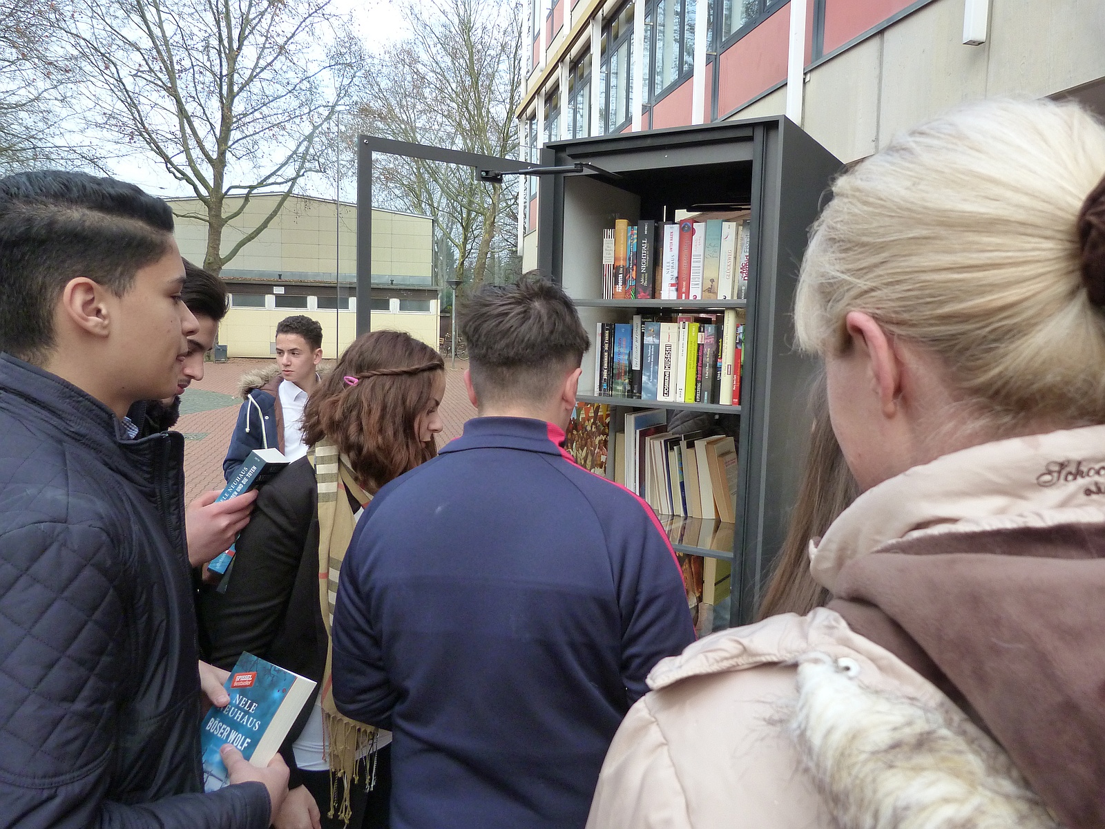 Die Projektgruppe der Ludwig-Erhard-Schule, die das Aufstellen und die Ausstattung des Unterliederbacher Bücherschranks begleitete, wird sich noch bis zum Beginn der Sommerferien 2016 um den Schrank kümmern und im Rahmen ihrer Projektarbeit die Nutzung des Bücherschrankes dokumentieren.