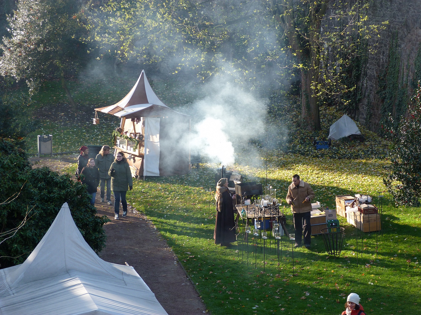 Der Weihnachtsmarkt unter dem Goetheturm ist noch bis zum 23. Dezember 2015 geöffnet. Die Öffnungszeiten sind werktags zwischen 16 und 22 Uhr und an den Wochenenden zwischen 13 und 22 Uhr.