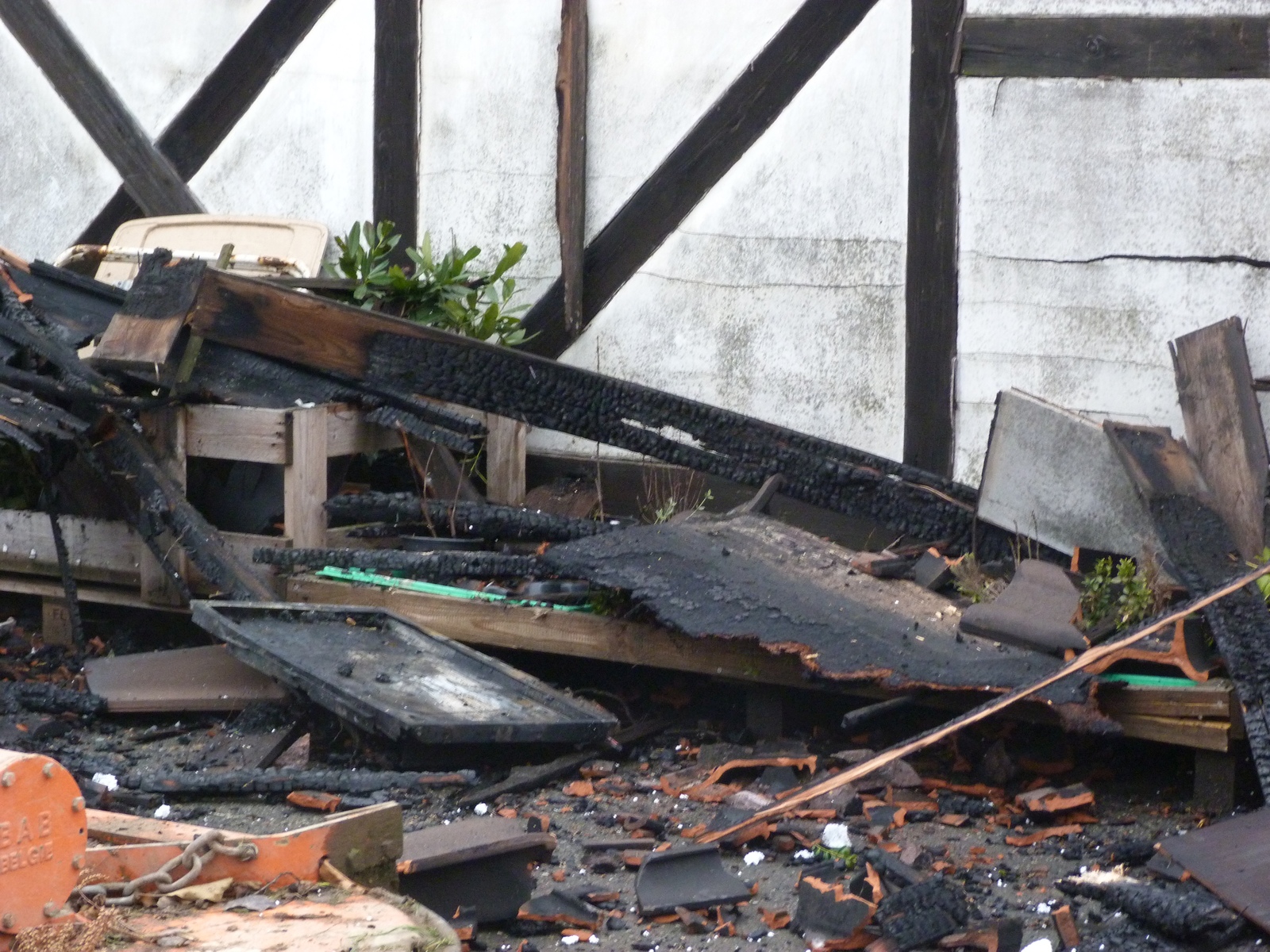 Die nachfolgenden Aufnahmen stammen vom Morgen nach dem Brand und zeigen die in Mitleidenschaft gezogenen Gebäude: