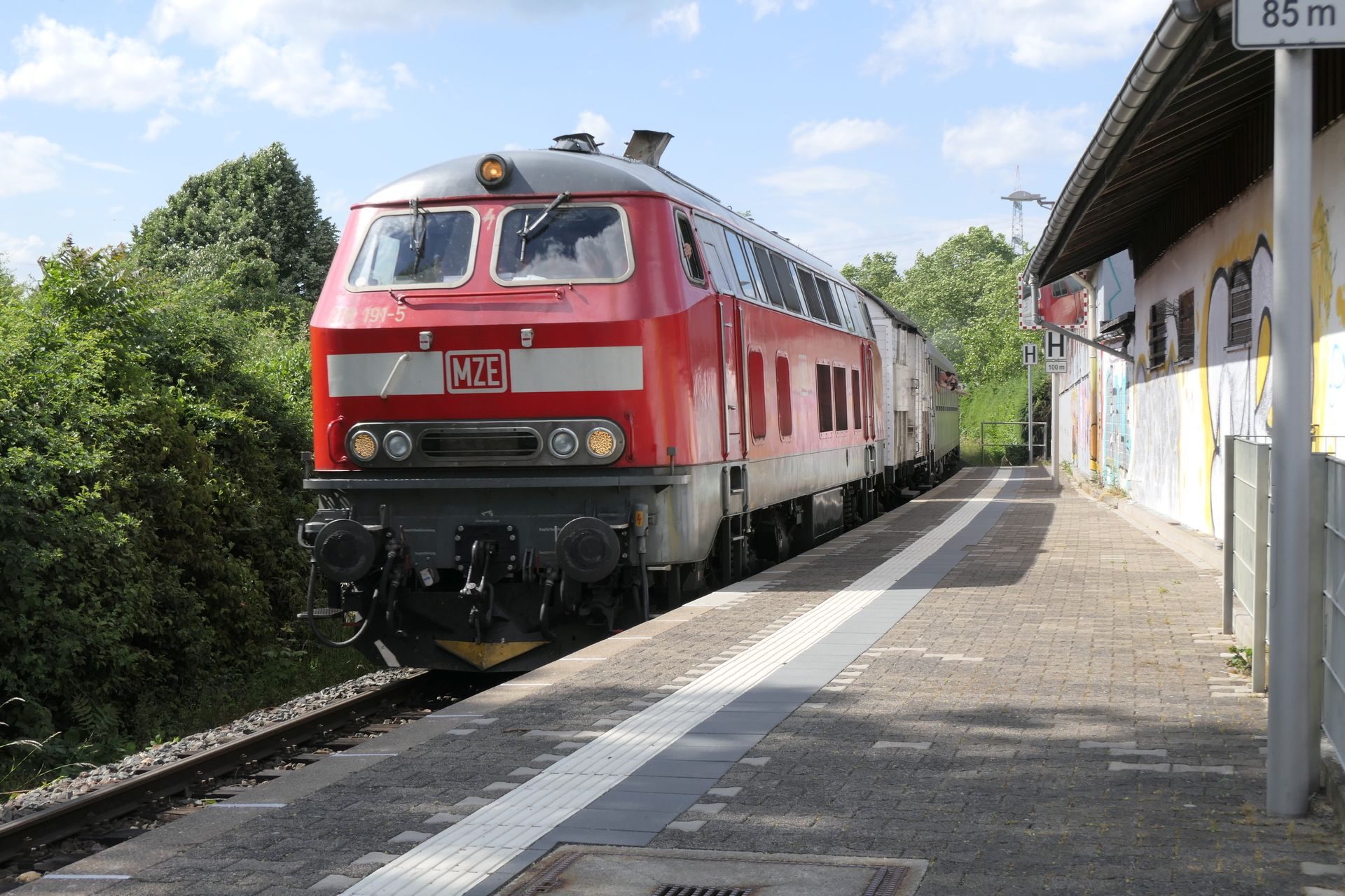 Die Baureihe 218 wurde in den 70er-Jahren von der damaligen Deutschen Bundesbahn in einer Stückzahl von etwas über 400 Lokomotiven beschafft. Heute fahren viele Maschinen dieses Loktyps für private Eisenbahnunternehmen, wie auch die 218 451-3 der Manuel Zimmermann Eisenbahndienstleistungen (MZE).