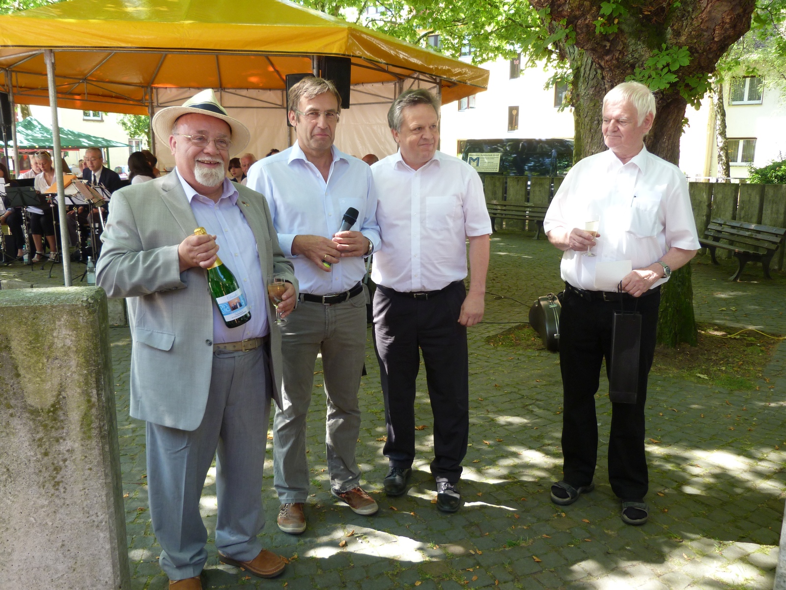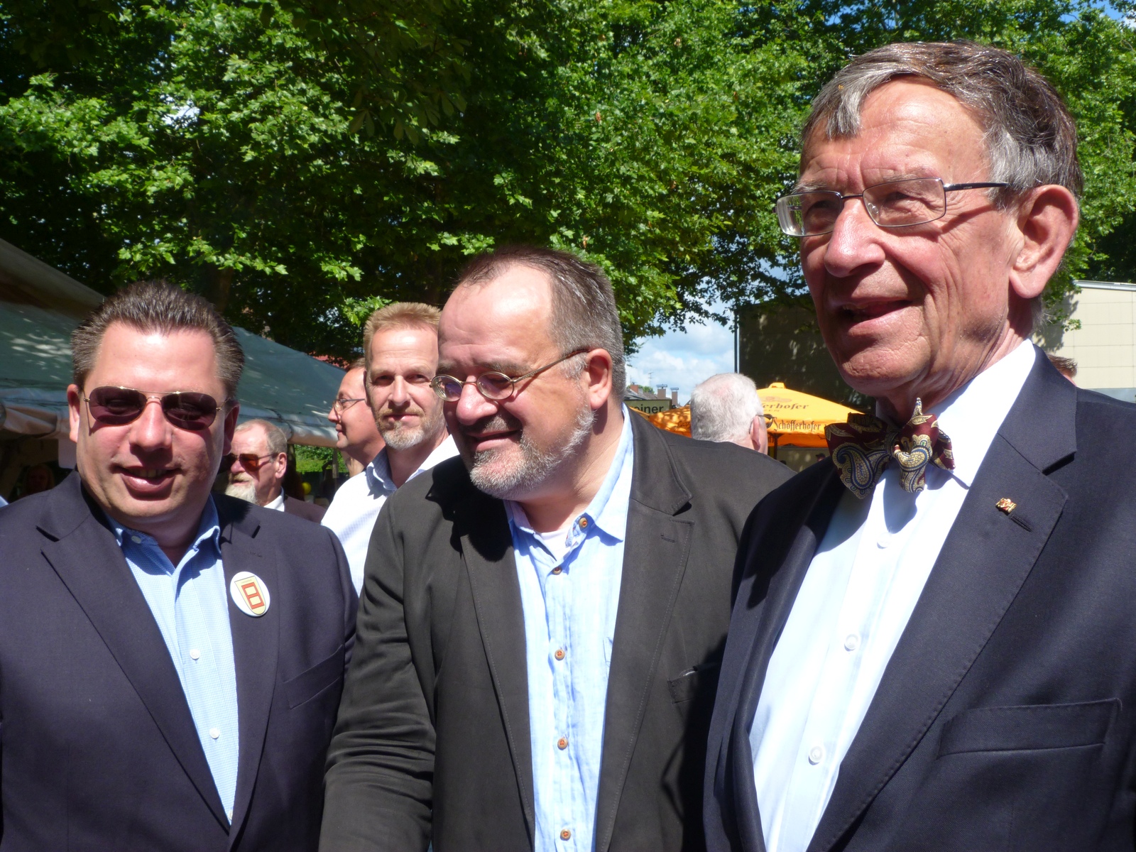Oben stehende Bilder vermitteln einen ersten Eindruck vom 33. Bürgerfest des Vereinsrings Unterliederbach. Neben viel politischer Prominenz sind natürlich auch Mitglieder der vielen Unterliederbacher Vereine auszumachen. Die Liedertafel, genannt die Worzel, überraschten mit neuem Dirigenten und frischem Repertoire, der Musikverein Unterliederbach gab den Eröffnungsreden einen würdigen Rahmen, nachdem er schon gestern bei der Eröffnung des Höchster Schlossfestes aufgespielt hatte.