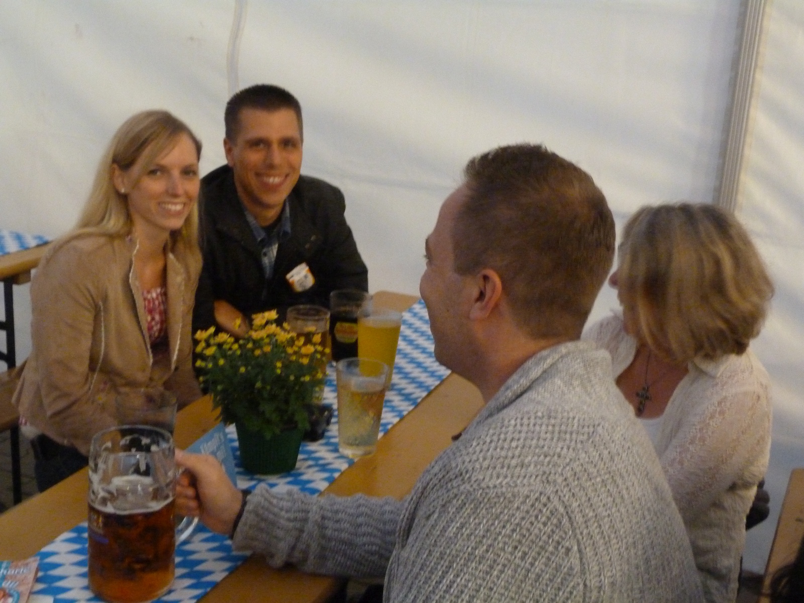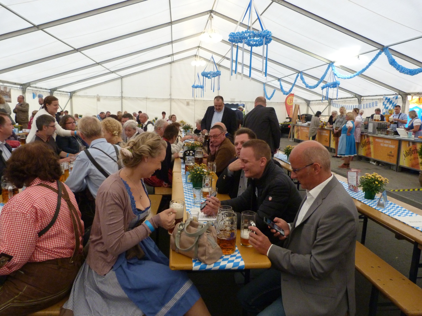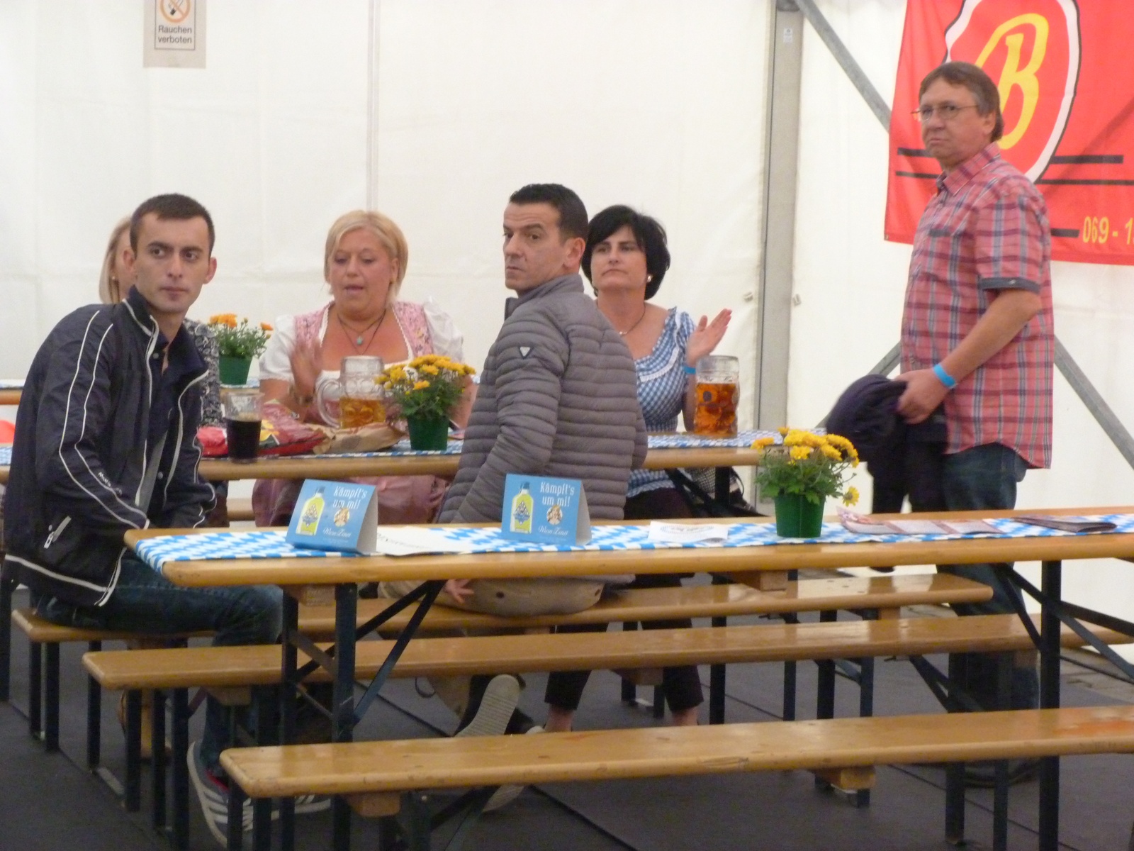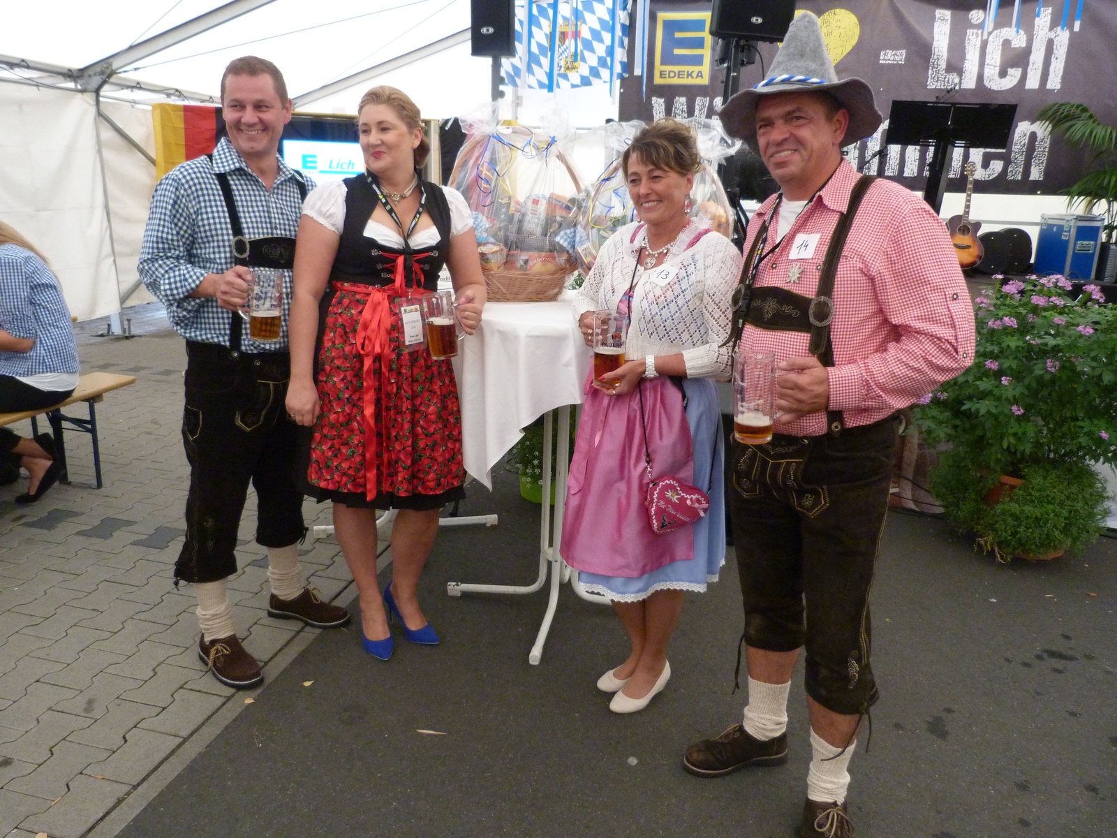 Samstag, der 01. Oktober 2016, um 15 Uhr ist das Festzelt ist eröffnet. Das 3. Unterliederbacher Oktoberfest findet statt. Edeka City Licht, Bisko und Mitglieder des VfB Unterliederbach haben das Fest vorbereitet und harren der Gäste. Die „Beinharten“ sind schon da. Das Empfangskomitee muss fotografiert werden, die VfBler hinter dem Tresen und auch Frau Bisko und Herr Lich. Wer strahlt am schönsten?