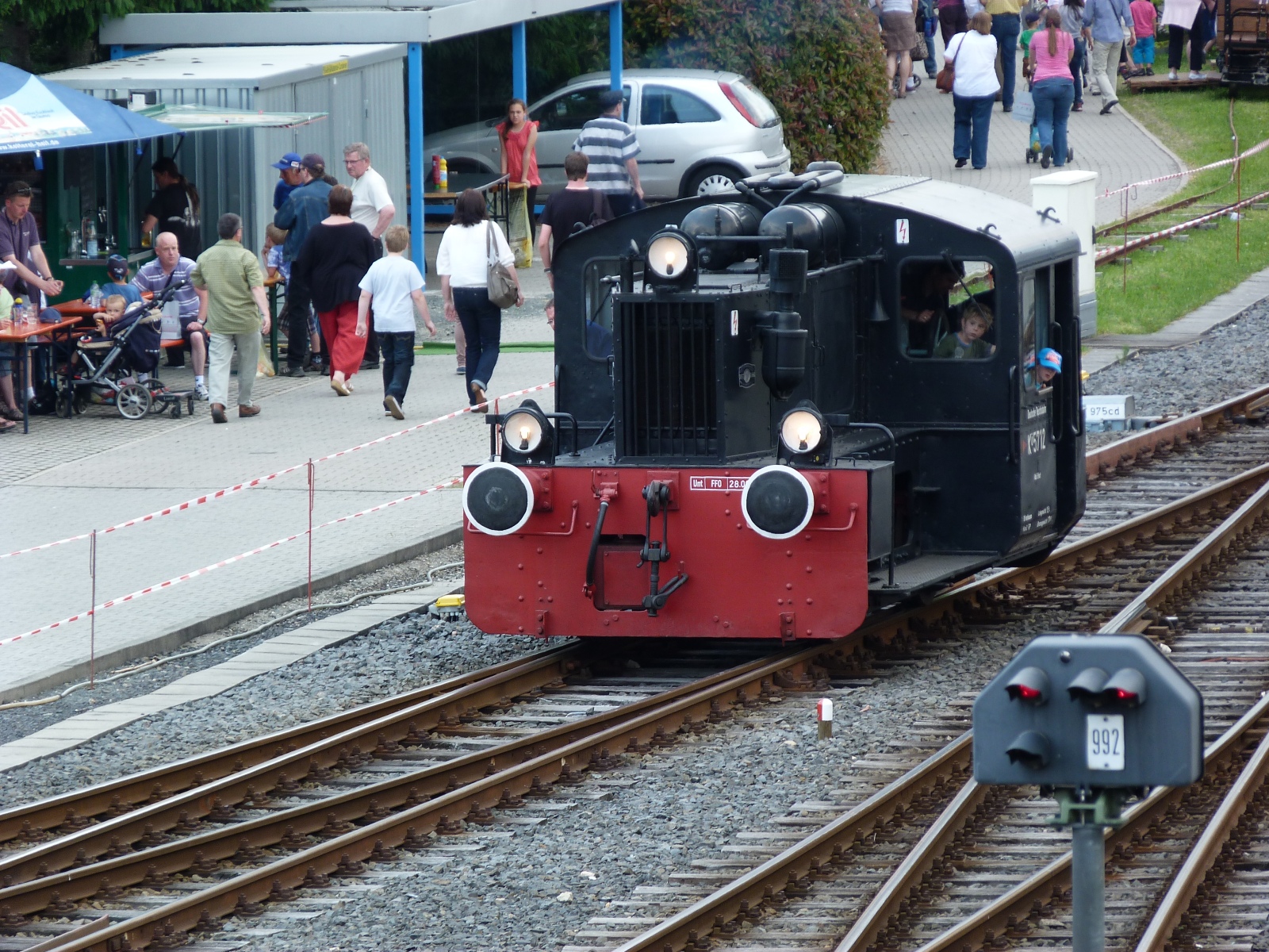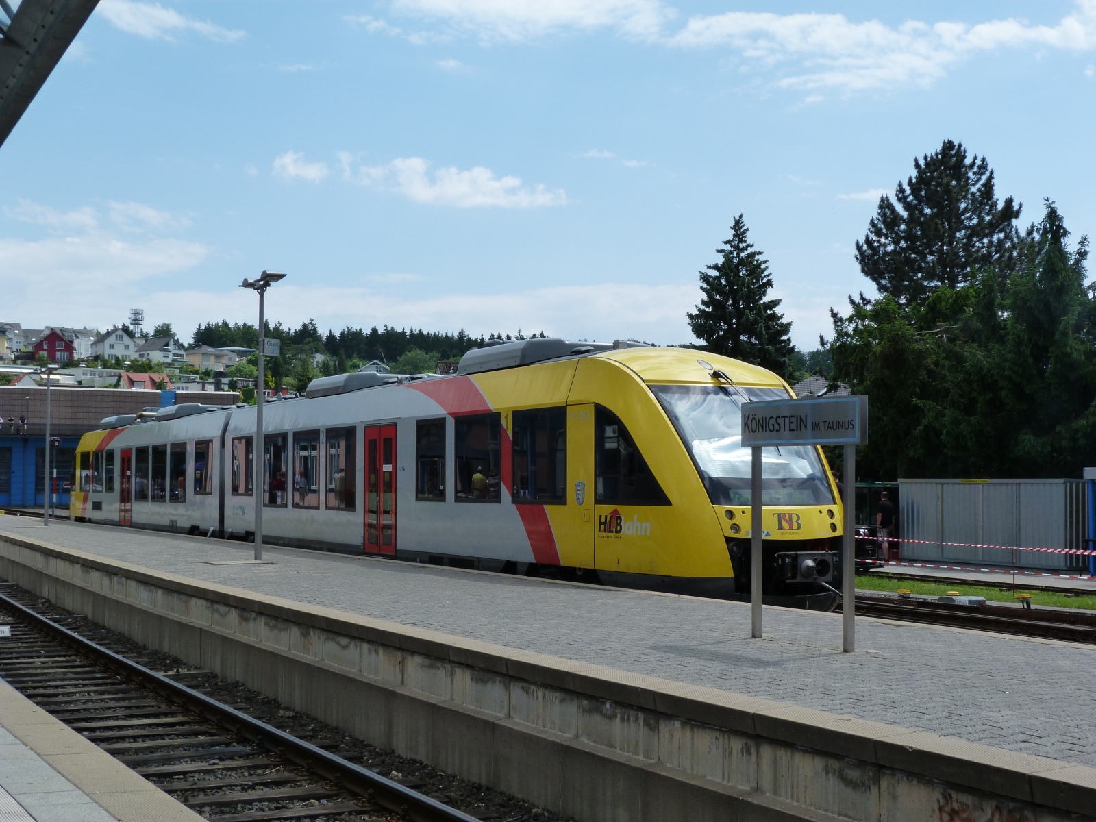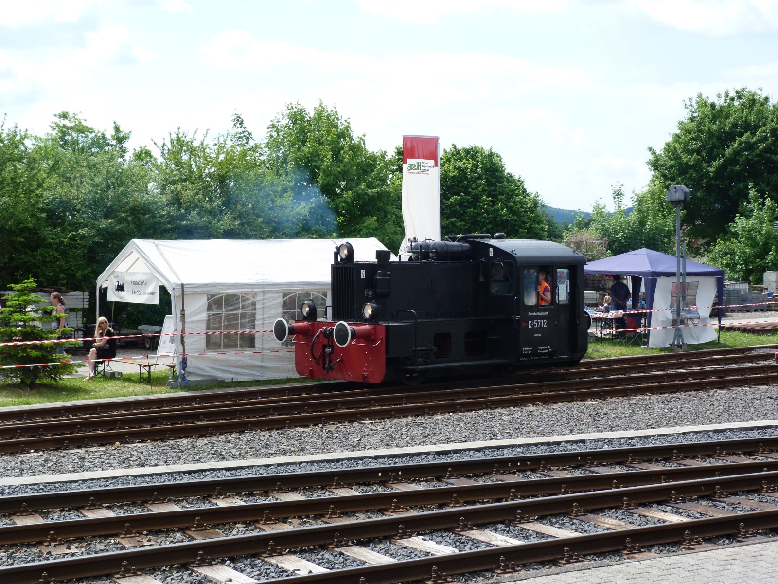 Am Pfingstsonntag war neben Volldampf auch noch Diesel-Power angesagt. Neben dem von 52 4867 gezogenen Woogtal Express verdichtete ein aus zwei Waggons und einer modernen Diesellokomotive bestehender Zug den Takt auf der Strecke zwischen Königstein und Frankfurt-Höchst. Bei der Diesellokomotive handelte es sich um eine Vossloh G 1000 BB der HFM Management für Hafen und Markt Frankfurt (Hafenbahn), für die die Fahrt auf dieser Strecke wohl eine Premiere war.