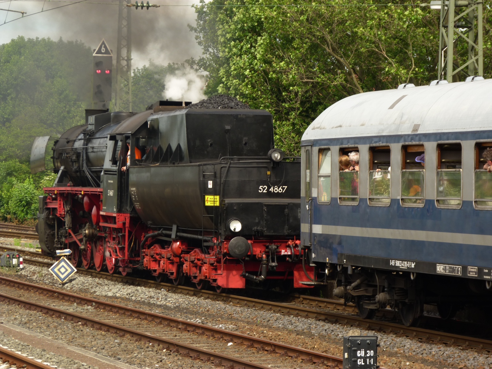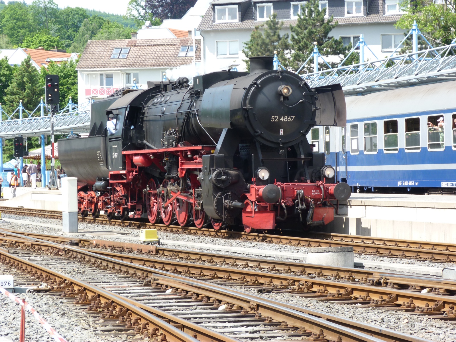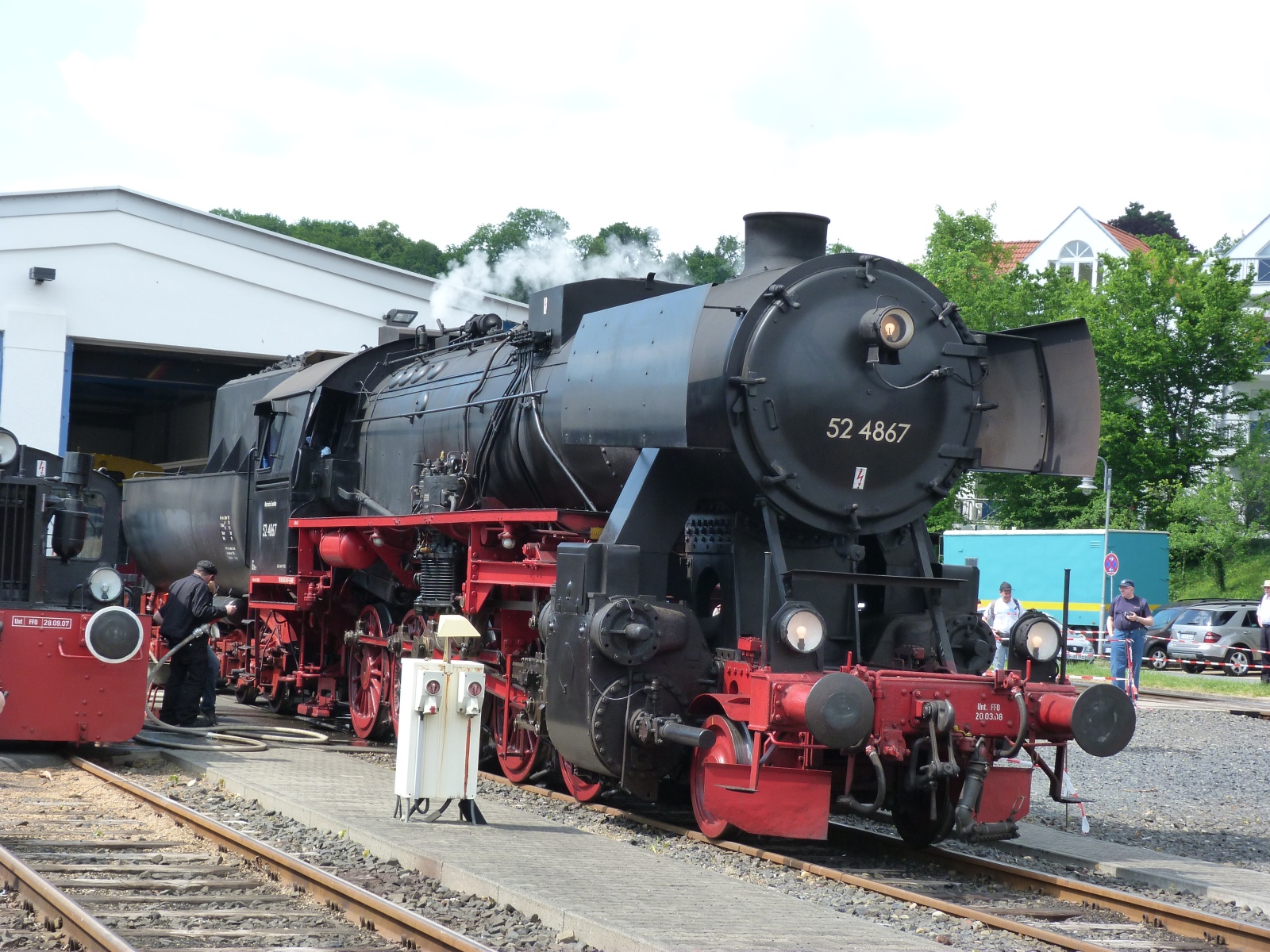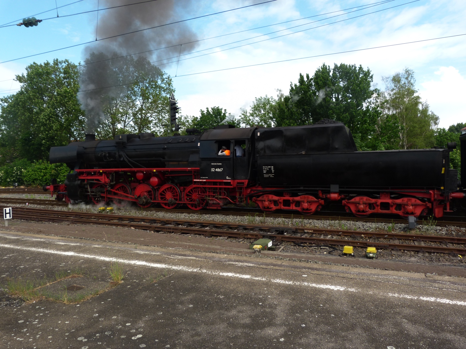 Auch Pfingsten 2012 hieß es für die Historische Eisenbahn Frankfurt e.V. (HE) wieder „Mit Volldampf in den Taunus”. Die schwere Güterzuglokomotive 52 4867 zog den Woogtal Express auf der Strecke zwischen Königstein und Frankfurt-Höchst und am Bahnhof Königstein gab es ein großes Fest.
