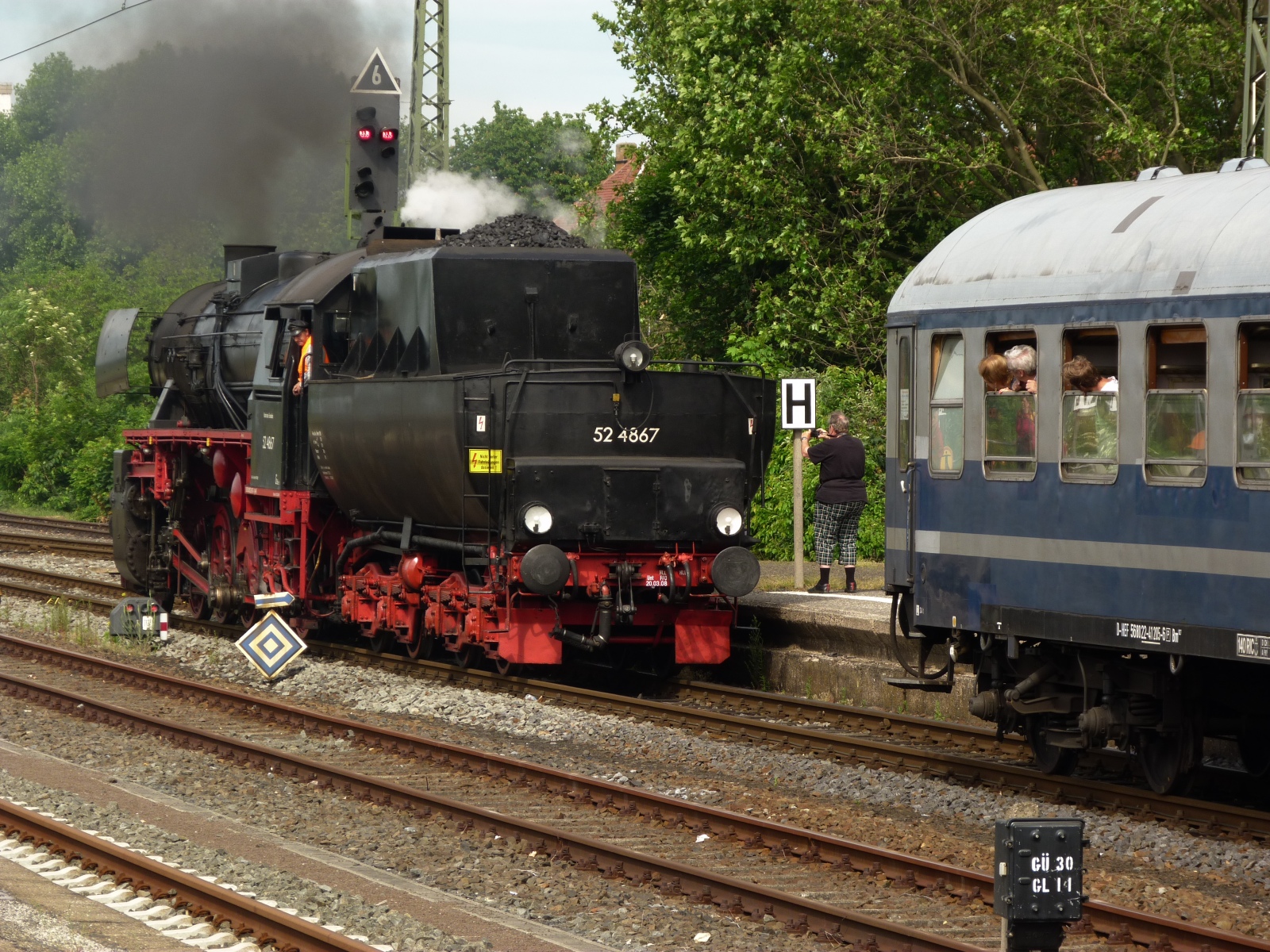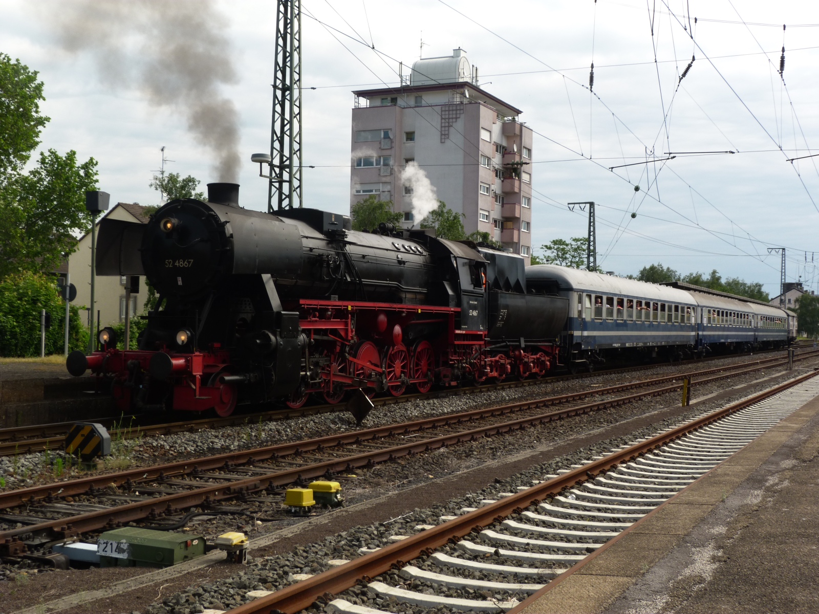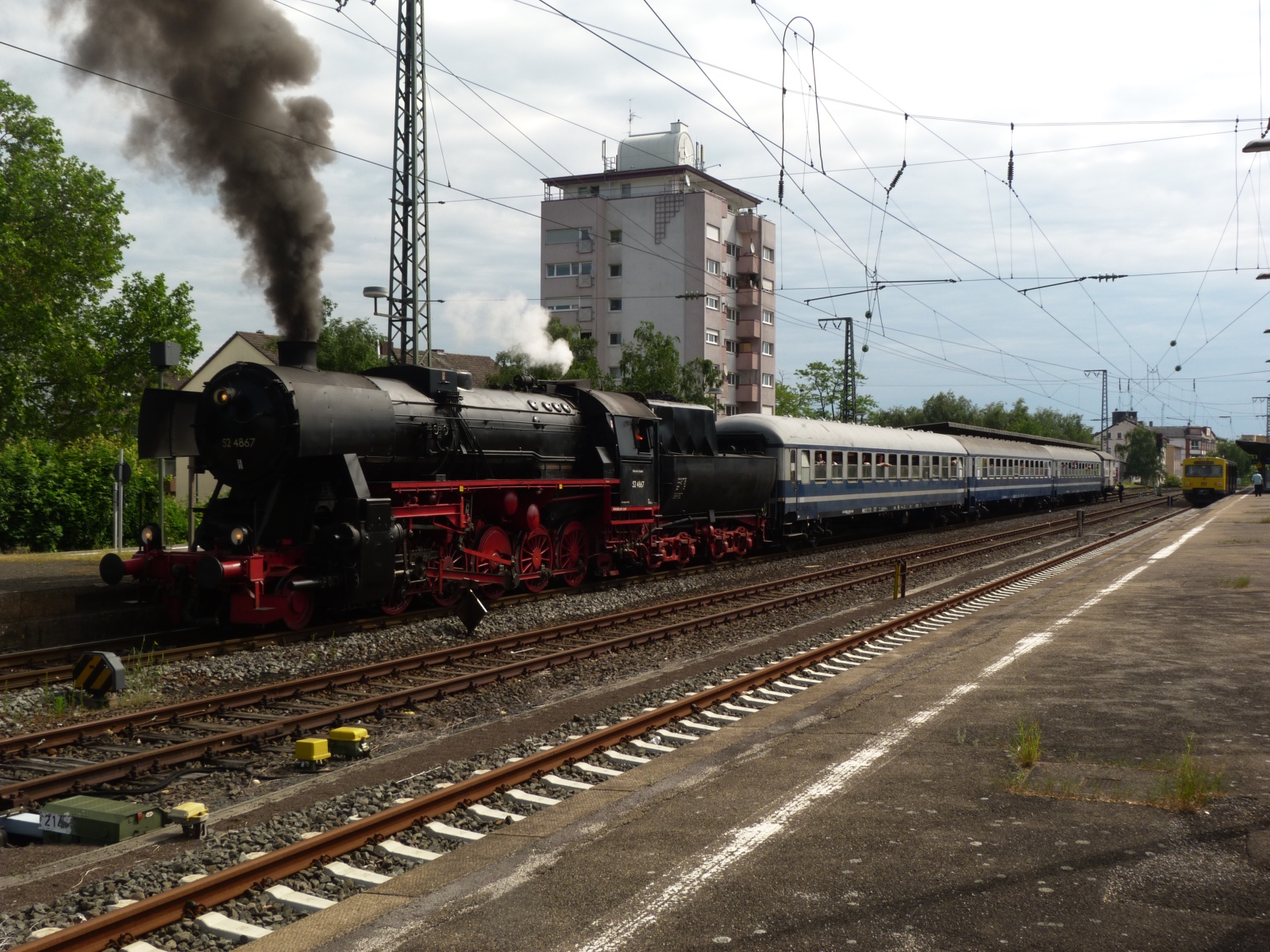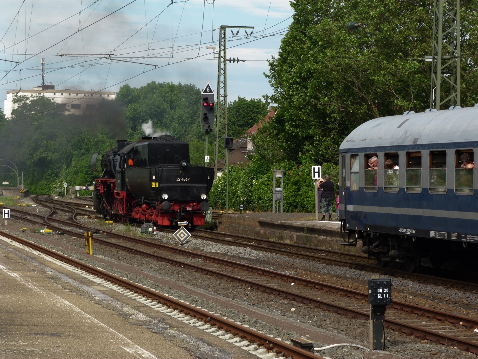 Auch Pfingsten 2012 hieß es für die Historische Eisenbahn Frankfurt e.V. (HE) wieder „Mit Volldampf in den Taunus”. Die schwere Güterzuglokomotive 52 4867 zog den Woogtal Express auf der Strecke zwischen Königstein und Frankfurt-Höchst und am Bahnhof Königstein gab es ein großes Fest.