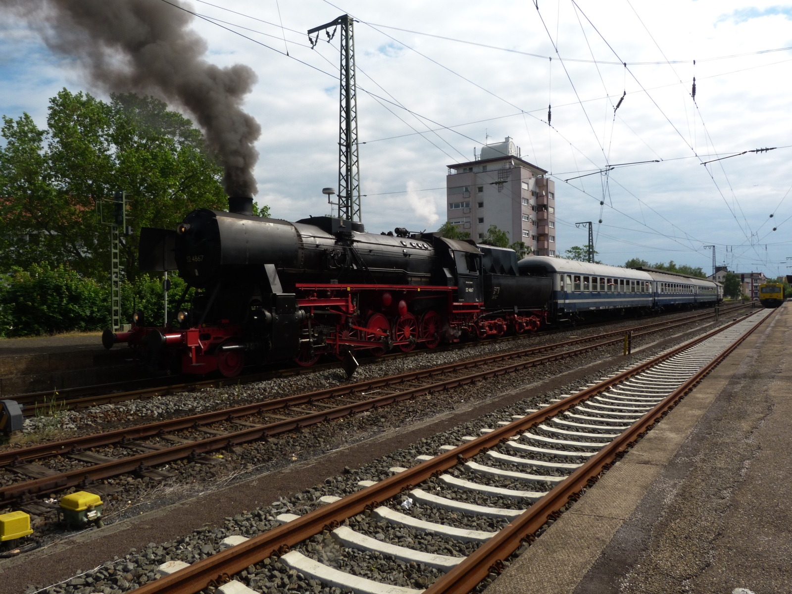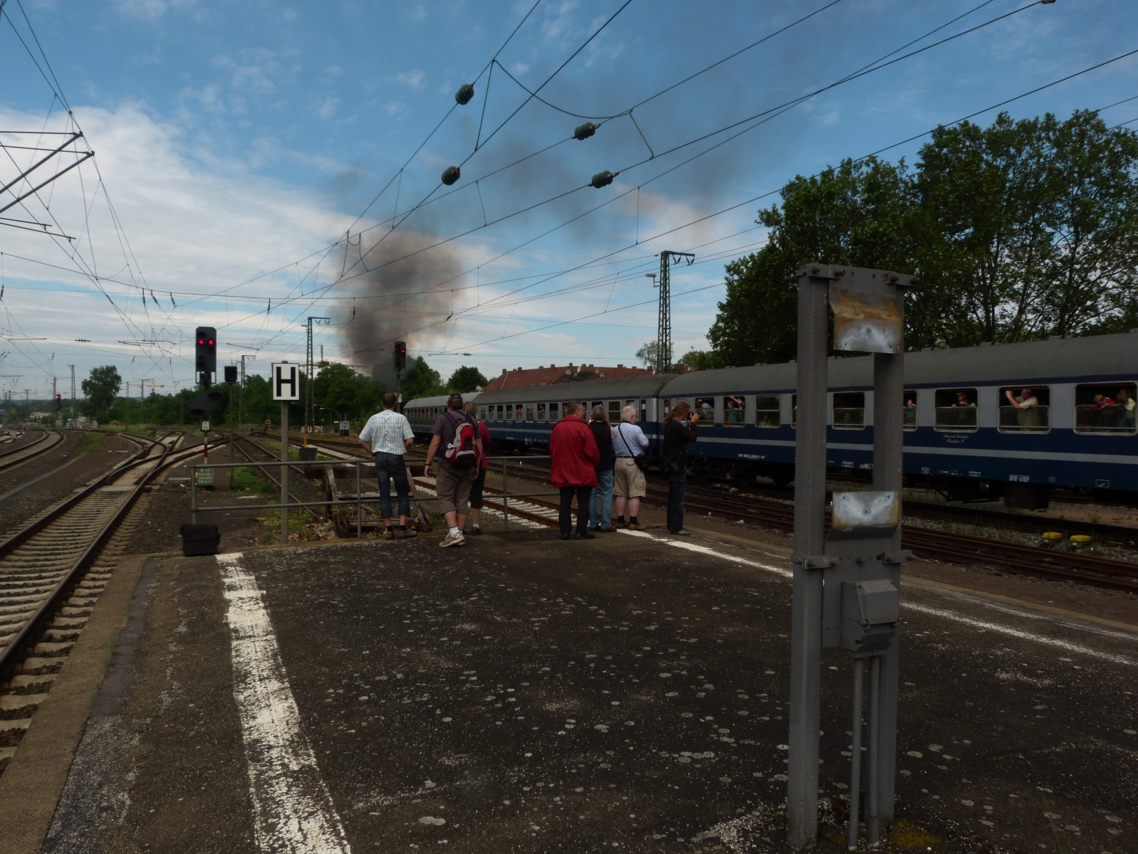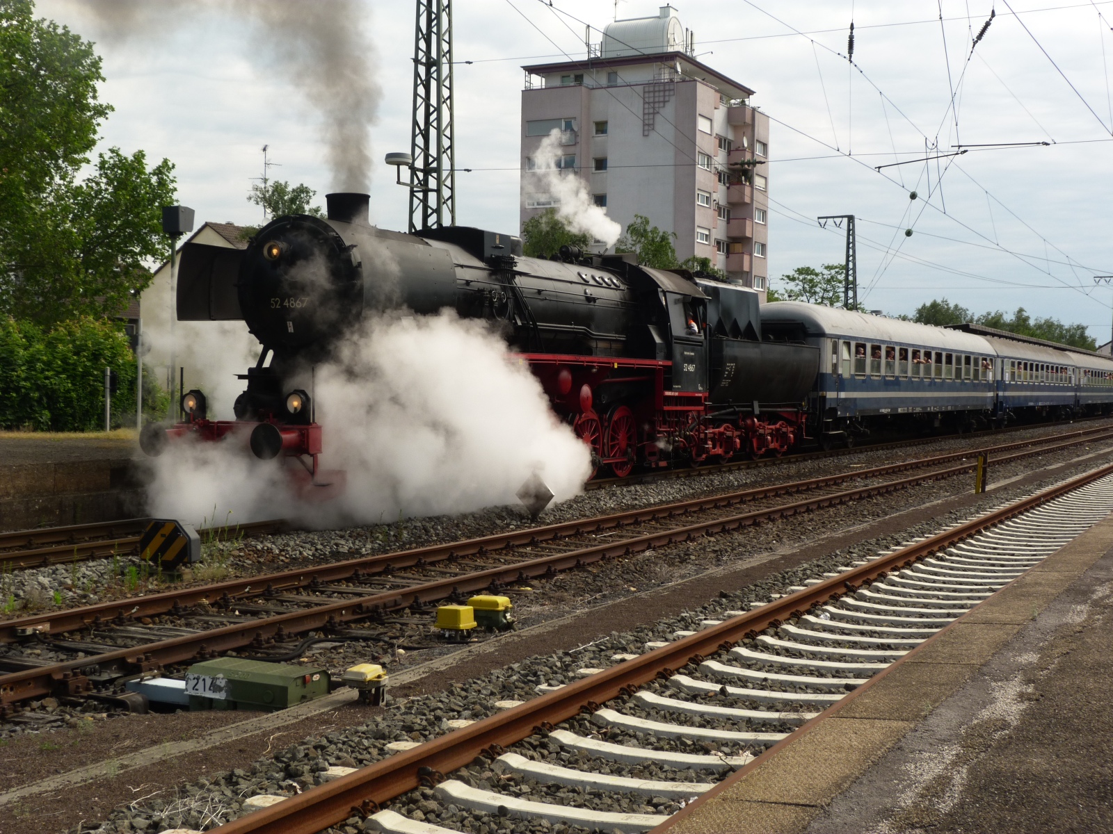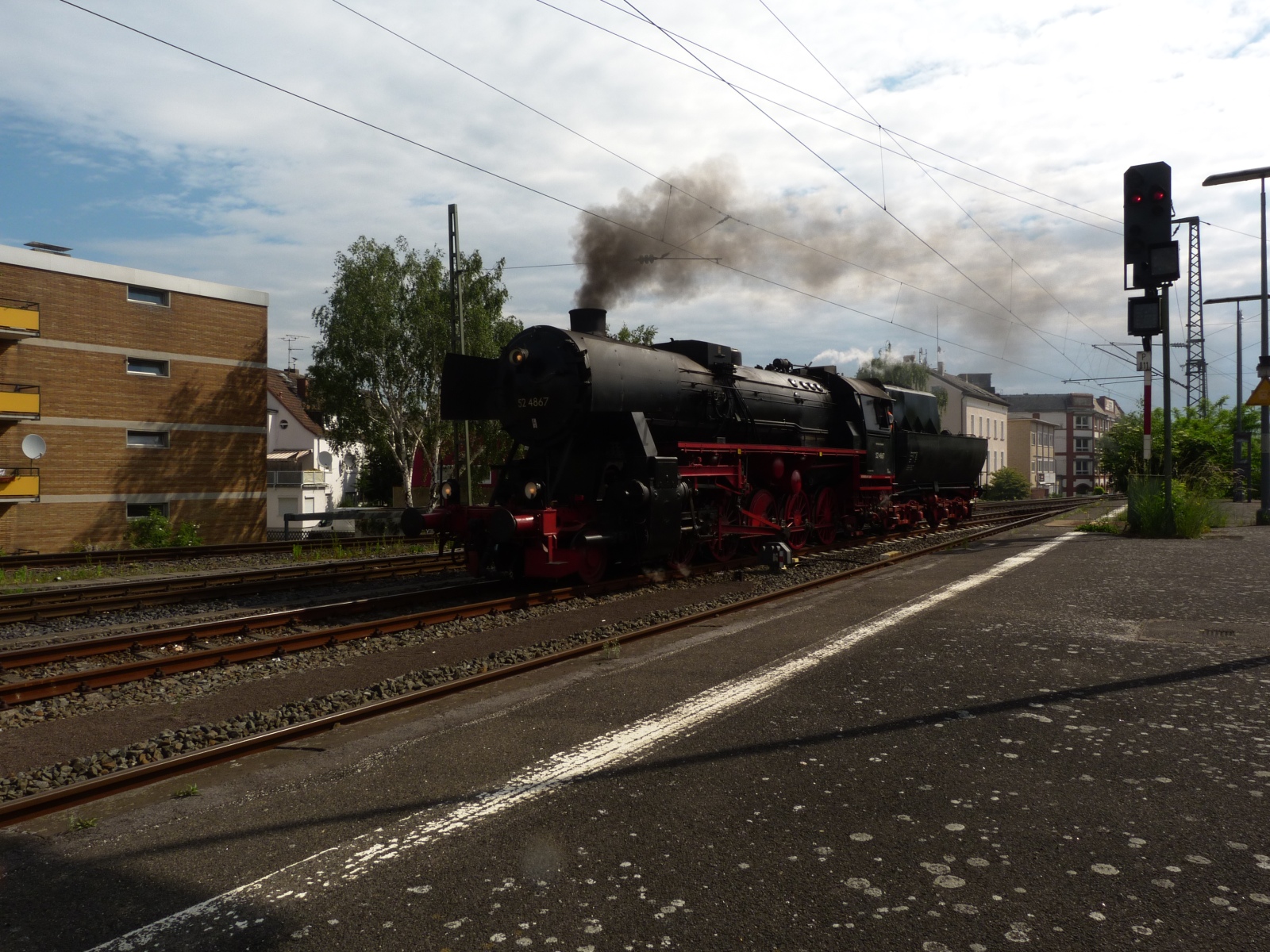 Pfingstmontag war nur die schwere Dampflokomotive 52 4867 mit dem Woogtal Express im Zweistundentakt zwischen Königstein und Frankfurt-Höchst unterwegs. Damit war viel Zeit, die Kamera auch auf das eine oder andere Motiv zu richten. Auffällig war, dass 52 4867 an beiden Fahrtagen recht stark rußte.