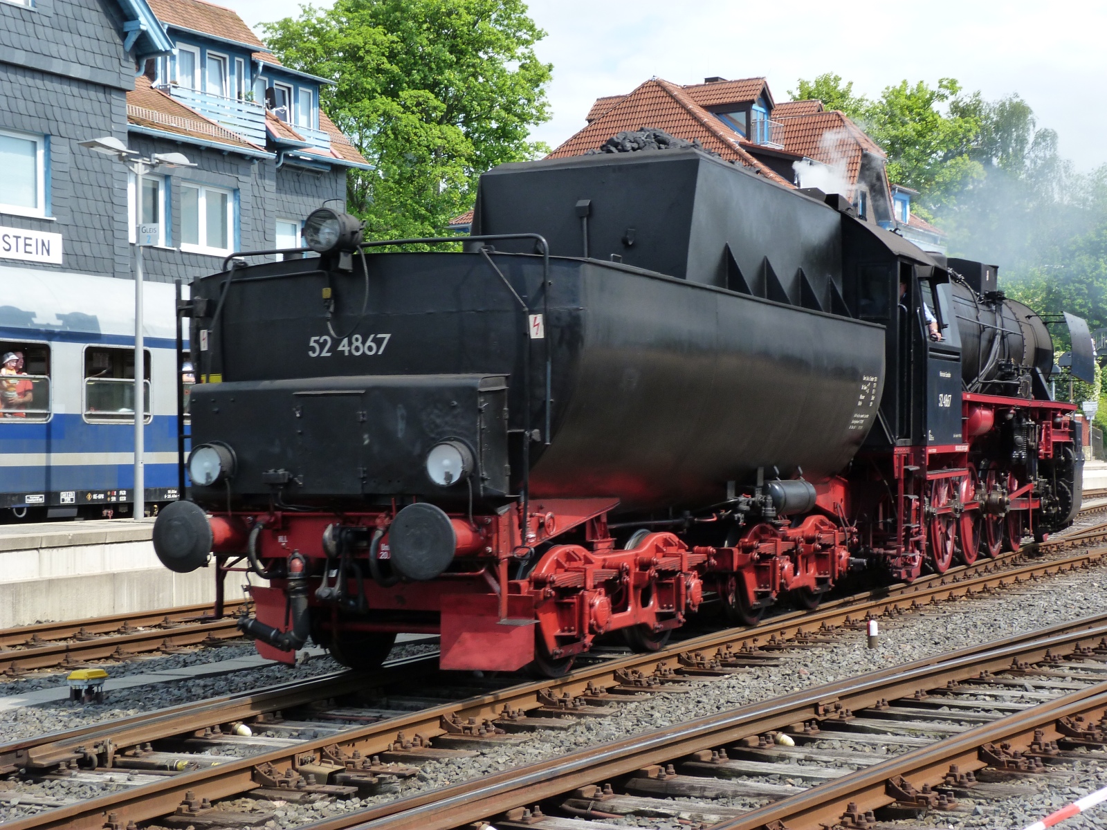 Auch Pfingsten 2012 hieß es für die Historische Eisenbahn Frankfurt e.V. (HE) wieder „Mit Volldampf in den Taunus”. Die schwere Güterzuglokomotive 52 4867 zog den Woogtal Express auf der Strecke zwischen Königstein und Frankfurt-Höchst und am Bahnhof Königstein gab es ein großes Fest.
