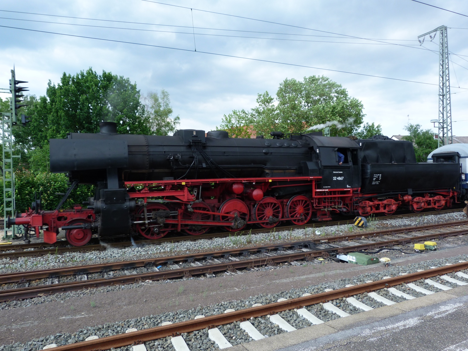 Pfingstmontag war nur die schwere Dampflokomotive 52 4867 mit dem Woogtal Express im Zweistundentakt zwischen Königstein und Frankfurt-Höchst unterwegs. Damit war viel Zeit, die Kamera auch auf das eine oder andere Motiv zu richten. Auffällig war, dass 52 4867 an beiden Fahrtagen recht stark rußte.