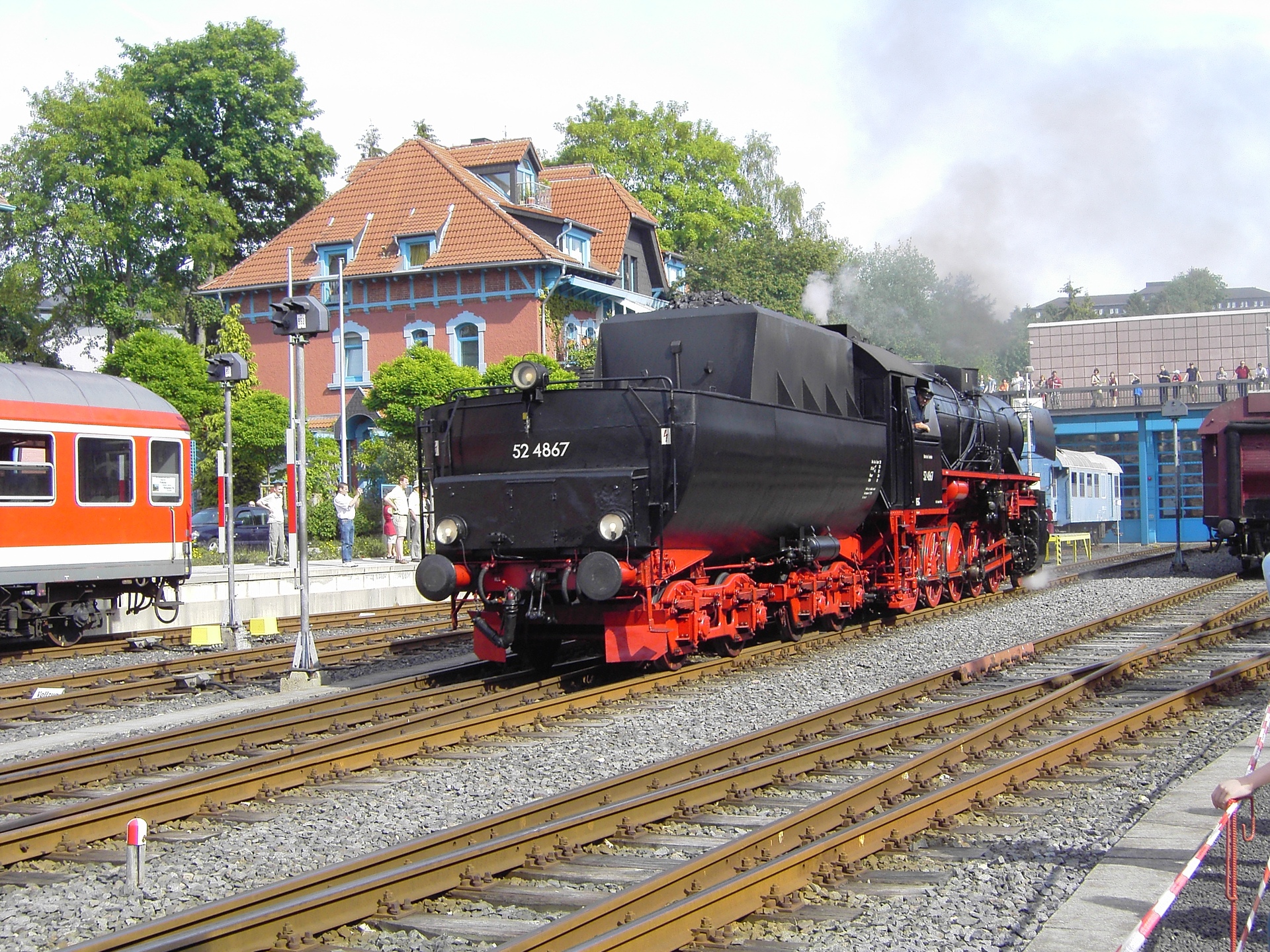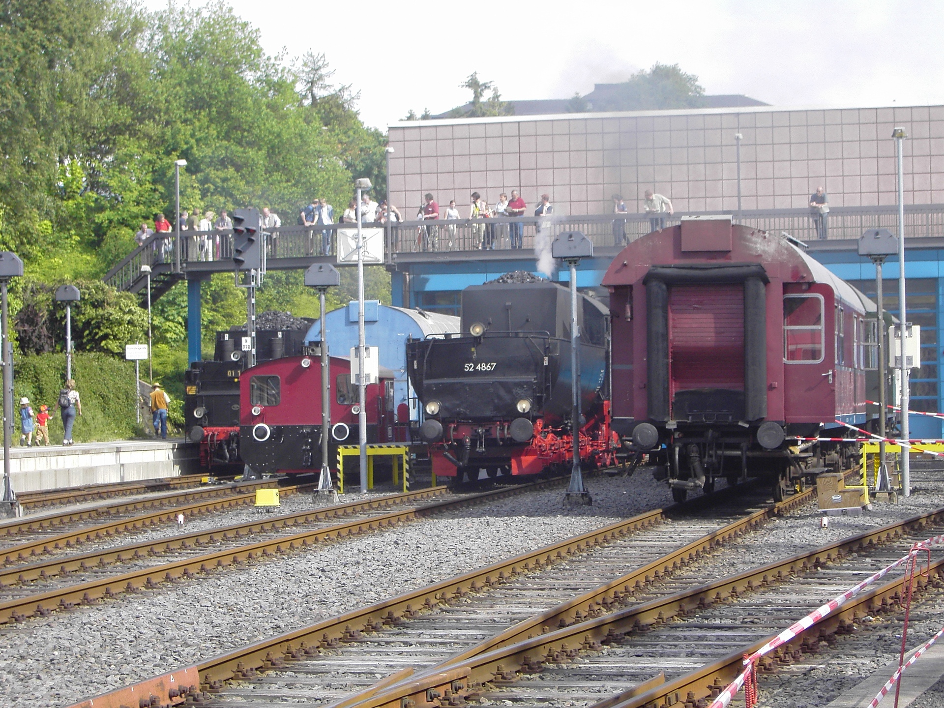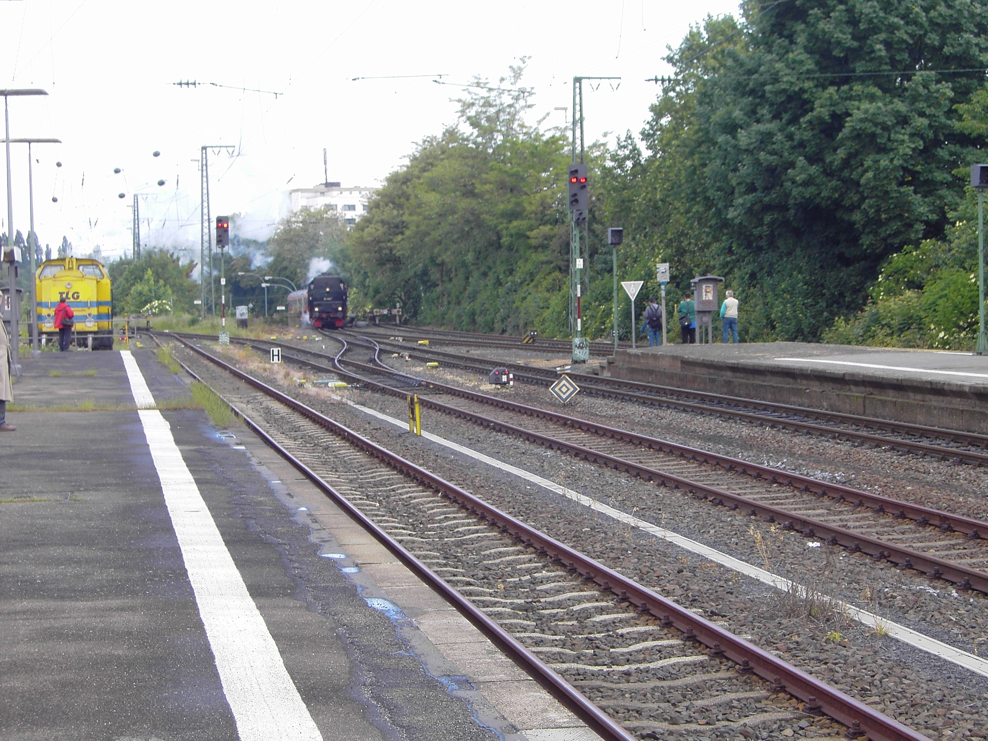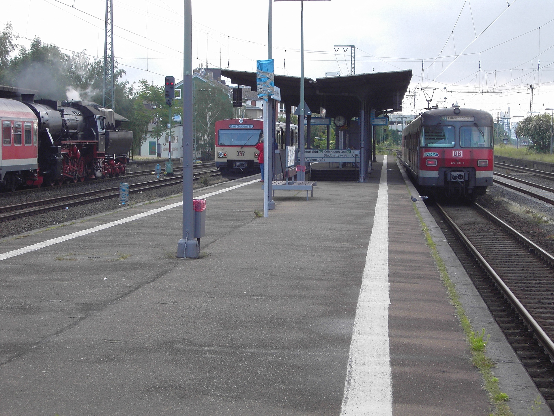 Im Jahr 2004 waren am Pfingstwochenende die Lokomotiven 01 118 und 52 4867 und eine Schienenbusgarnitur zwischen den Bahnhöfen Frankfurt-Höchst und Königstein im Taunus unterwegs, dazu war In Königstein auch noch die Diesellokomotive V36 406 ausgestellt. Triebwagen der heutigen (2020) HLB trugen damals noch das Logo der FKE und auf den S-Bahn-Strecken waren noch Triebwagen der ersten Generation von 1978 unterwegs. Zwischen der Oberleitung in Frankfurt am Main Höchst knatterte am Pfingstmontag, hier nur als Verunreinigung am Himmel erkennbar, eine Tante Ju umher.