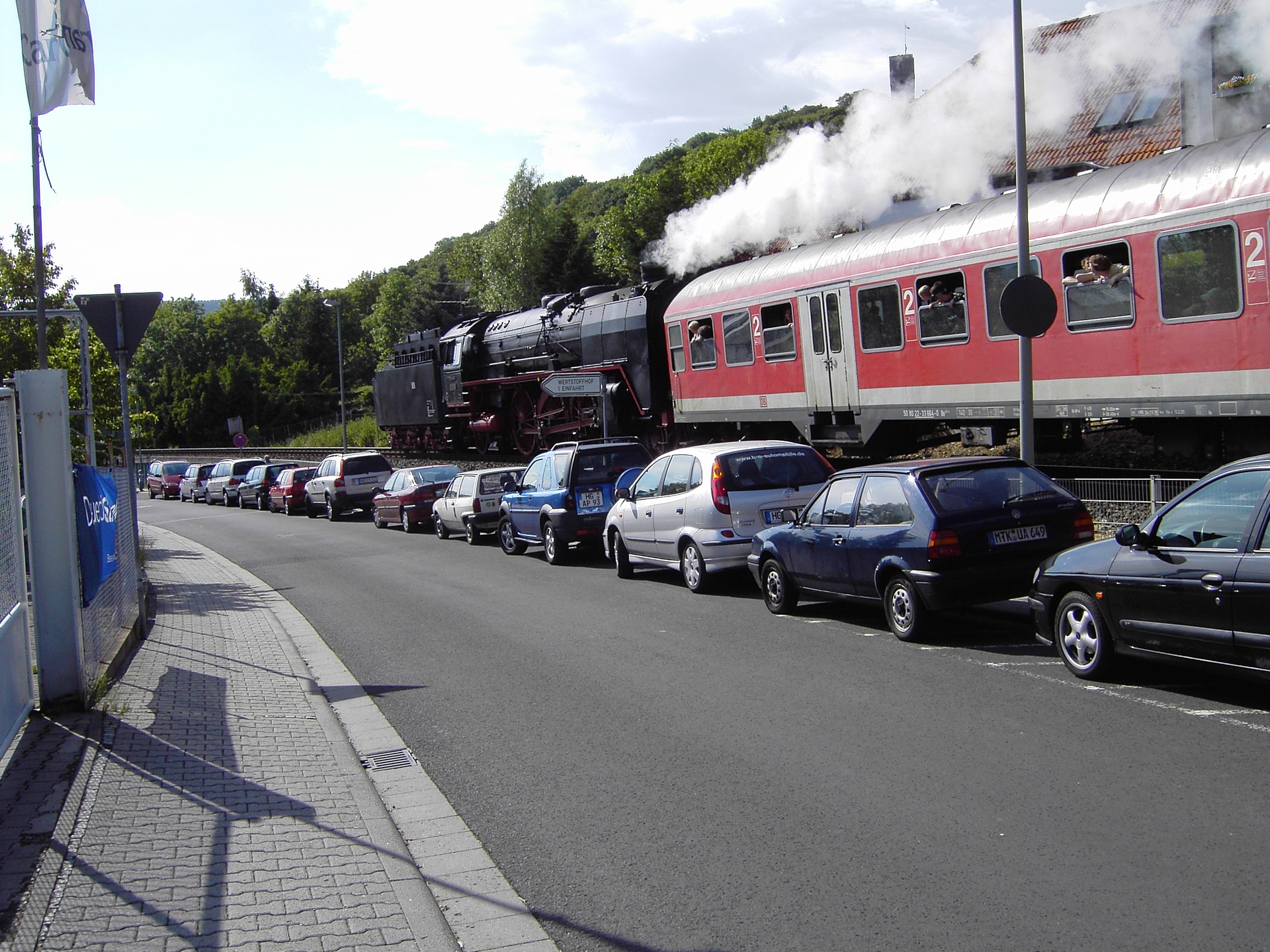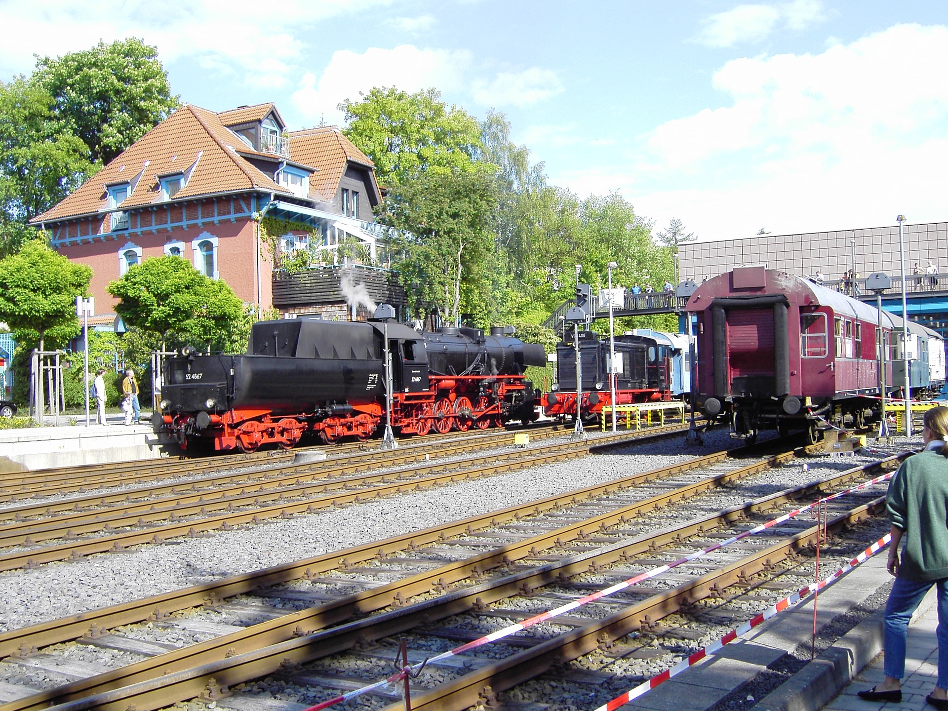 Im Jahr 2004 waren am Pfingstwochenende die Lokomotiven 01 118 und 52 4867 und eine Schienenbusgarnitur zwischen den Bahnhöfen Frankfurt-Höchst und Königstein im Taunus unterwegs, dazu war In Königstein auch noch die Diesellokomotive V36 406 ausgestellt. Triebwagen der heutigen (2020) HLB trugen damals noch das Logo der FKE und auf den S-Bahn-Strecken waren noch Triebwagen der ersten Generation von 1978 unterwegs. Zwischen der Oberleitung in Frankfurt am Main Höchst knatterte am Pfingstmontag, hier nur als Verunreinigung am Himmel erkennbar, eine Tante Ju umher.