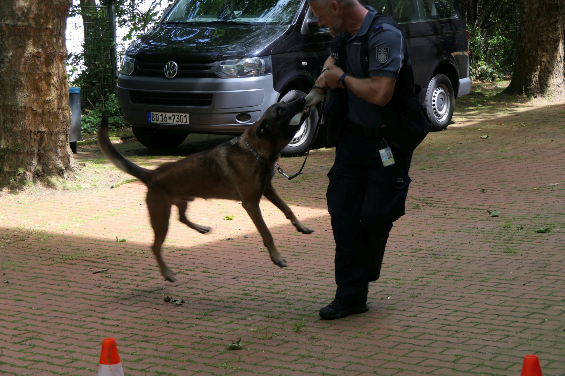 Vorführungen sportlicher Art gab es von der TGU, leider ohne Bilder hier. Viele Bilder gibt es dafür von der Hundestaffel des Frankfurter Zolls vom Rhein-Main-Flughafen.