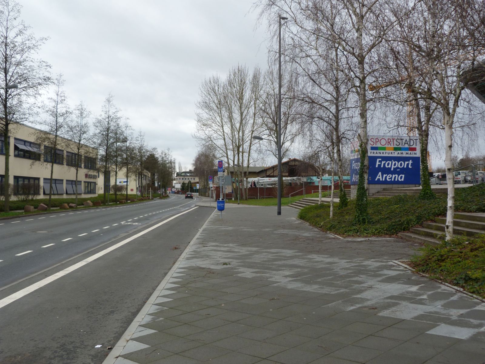 Ein weiteres Ziel war dann der bunte Bau an der Königsteiner Straße. Die Farbgebung gemahnt an Woodstock. Wann war das noch einmal? Plätze beschrifftet das Frankfurter Grünflächenamt neuerdings, Kinderspielplatz mit Kinderspielplatz oder Bolzplatz mit Bolzplatz. Genial! Oder vielleicht sogar Mega?