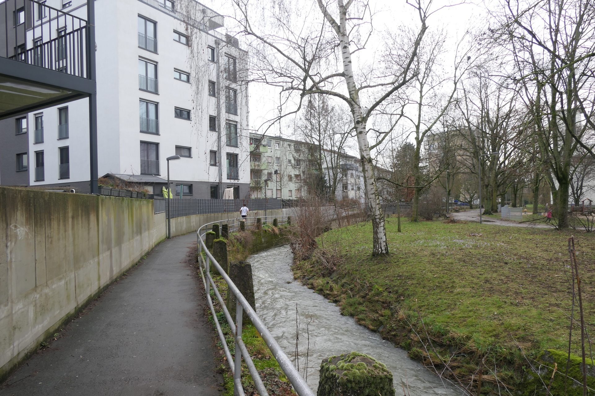 Der Silvesterspaziergang 2017 führte aus dem Osten Unterliederbachs an den ausnahmsweise reichlich Wasser führenden Liederbach und weiter in den äußersten Westen des Stadtteils. Heimchen, Ballsporthalle und Jahrhunderthalle lagen auf dem Weg. Der immer trauriger anmutende Japanische Garten – ja so etwas gibt es am Rand des Stadtteils – wurde kurz betrachtet. Über Feldwege ging es in Richtung Parkstadt, wobei sich das Objektiv der Kamera auch kurz auf den Lieblingsbaum des Autors auf Unterliederbacher Gemarkung richtete.