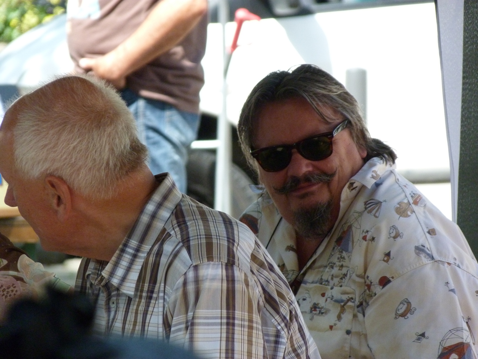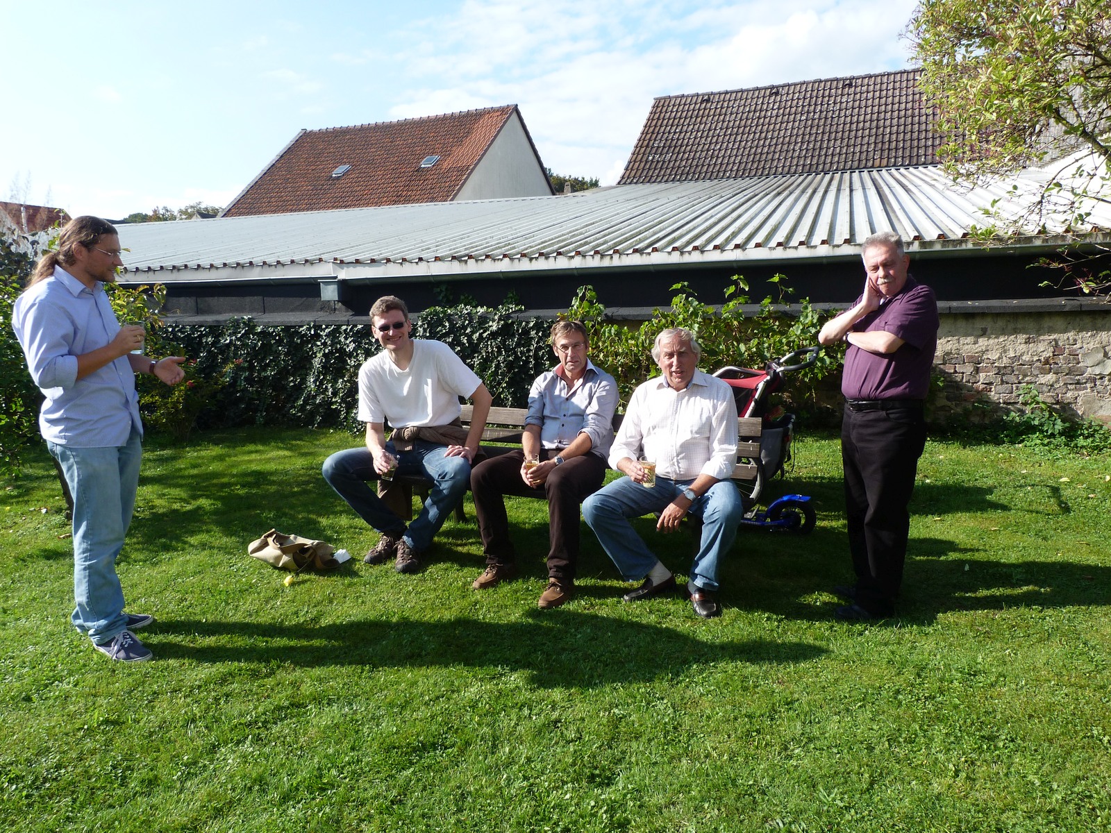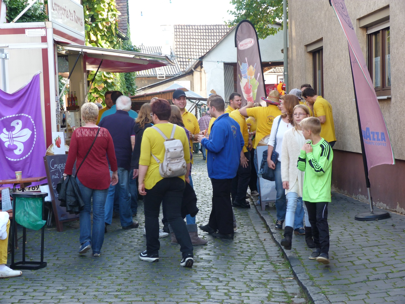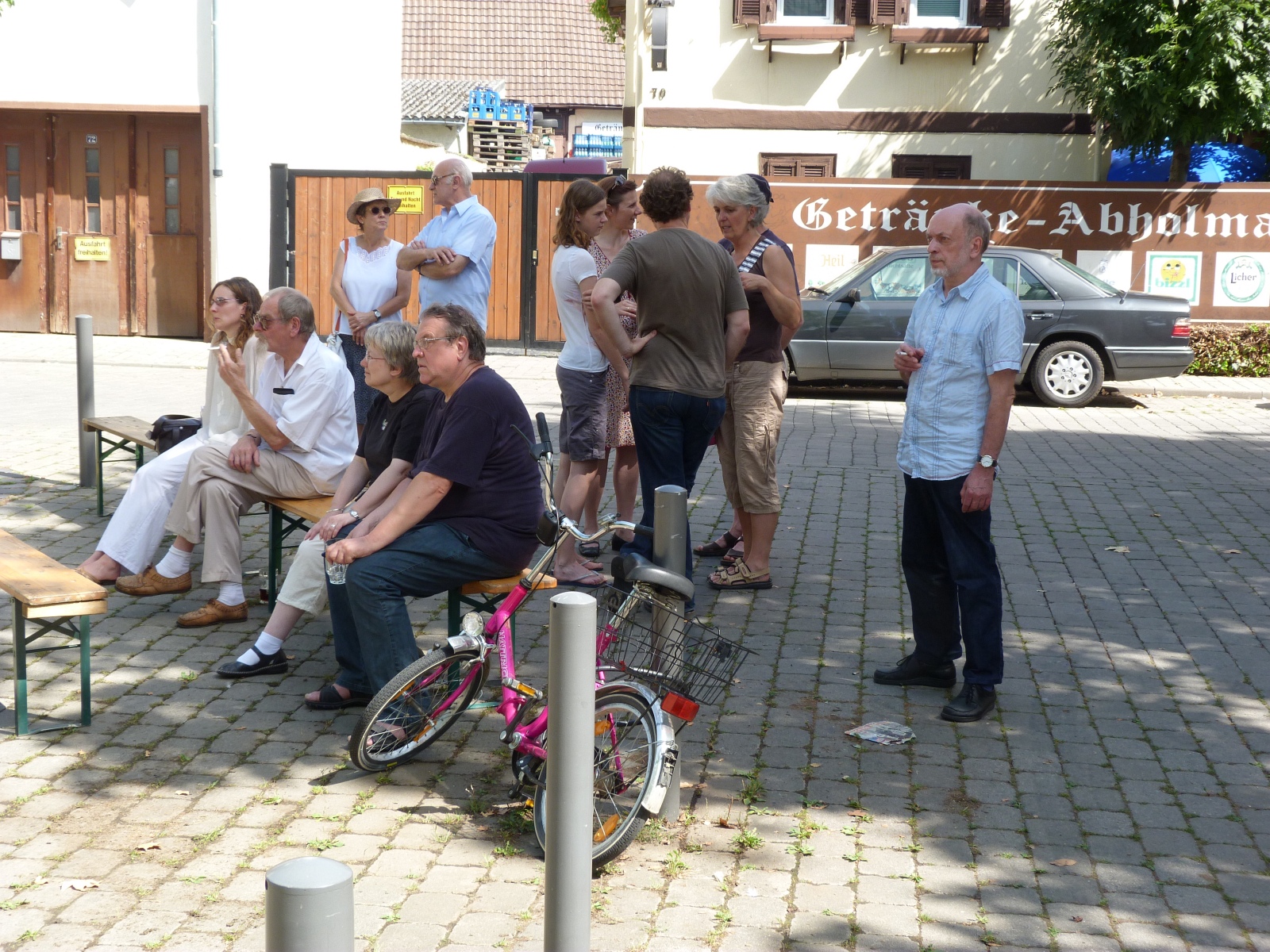 19. August 2012, die Hot Four spielen auf dem Unterliederbacher Marktplatz. Gleichzeitig ist die Unterliederbacher Dorfkirche, um die sich heute alles dreht, für Besichtigungen geöffnet. Die Dorfkirche, deren Ursprünge bis ins späte 12. Jahrhundert oder frühe 13. Jahrhundert zurückreichen und deren heutige Ausgestaltung weitestgehend auf das 18. Jahrhundert zurückgeht, ist das Schmuckstück des Frankfurter Stadtteils.